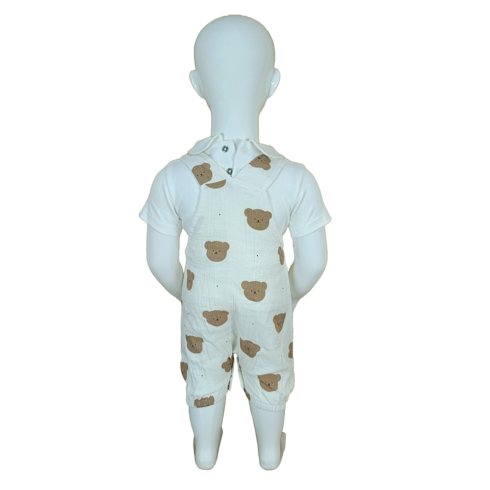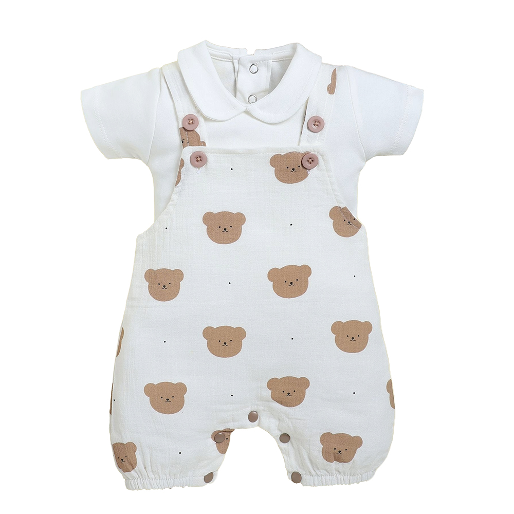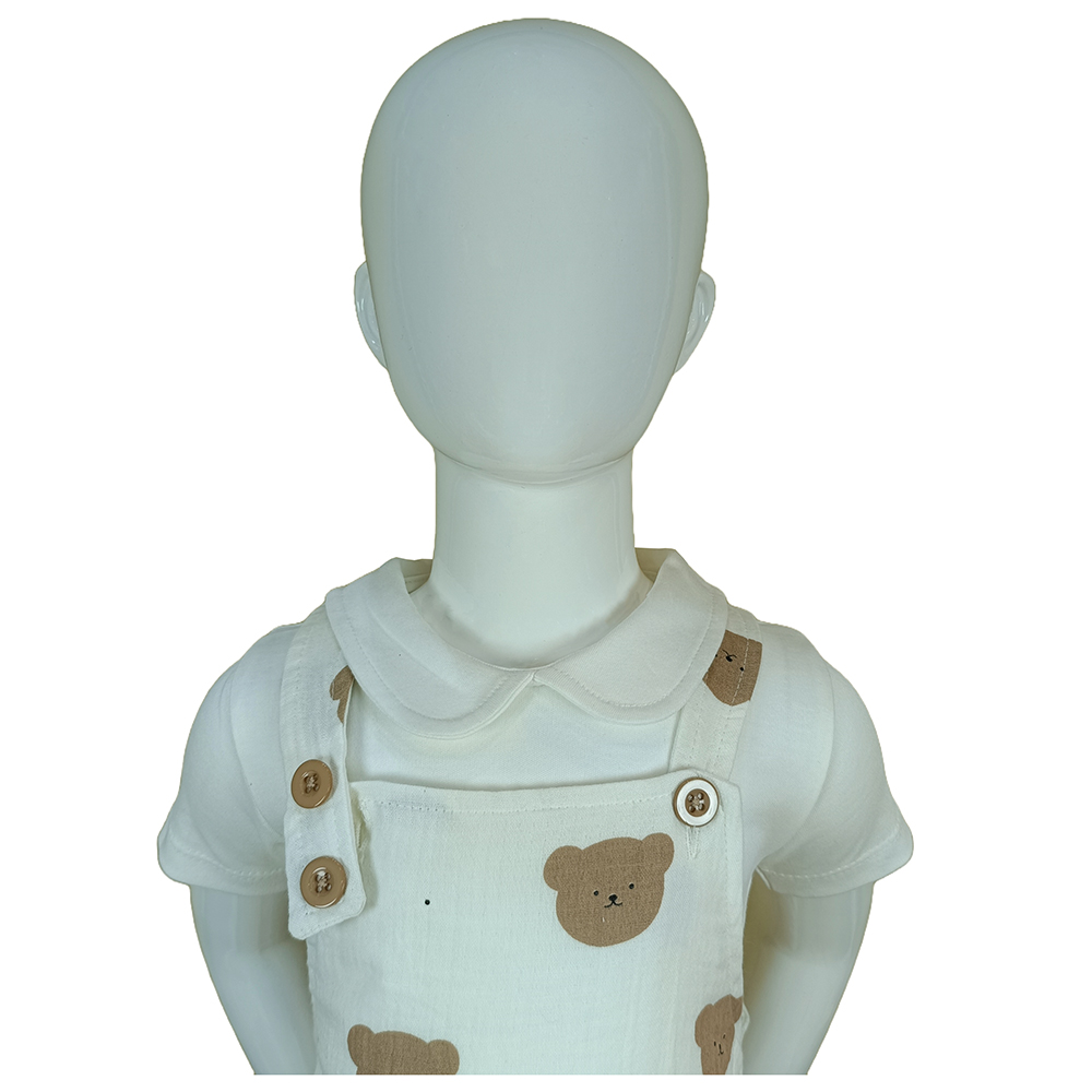 π» DESIGN FEATURES: Features an adorable bear print πΎ in blue and brown options, paired with a timeless white half-sleeve T-shirt with a cute Peter Pan collar. π€π