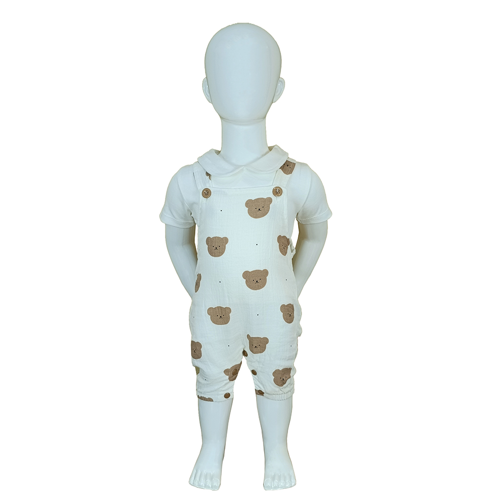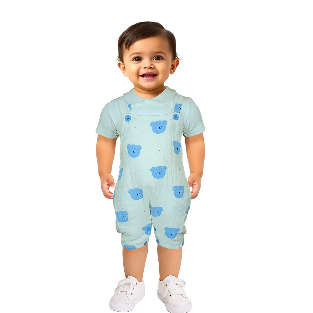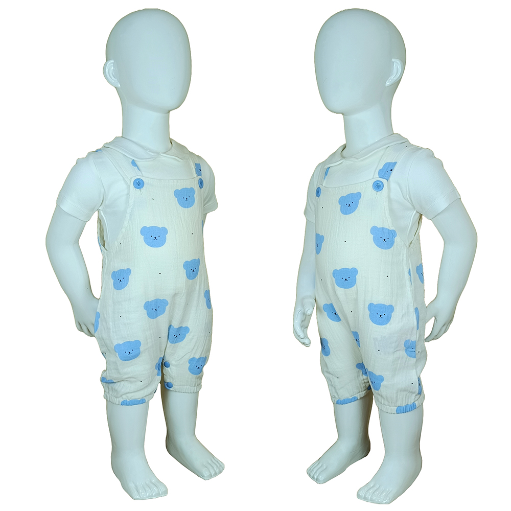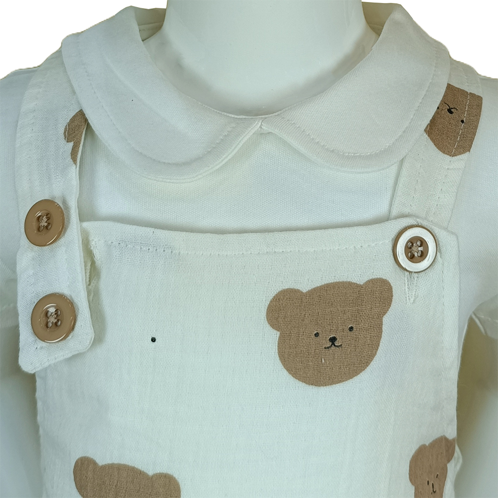 π» DESIGN FEATURES: Features an adorable bear print πΎ in blue and brown options, paired with a timeless white half-sleeve T-shirt with a cute Peter Pan collar. π€π