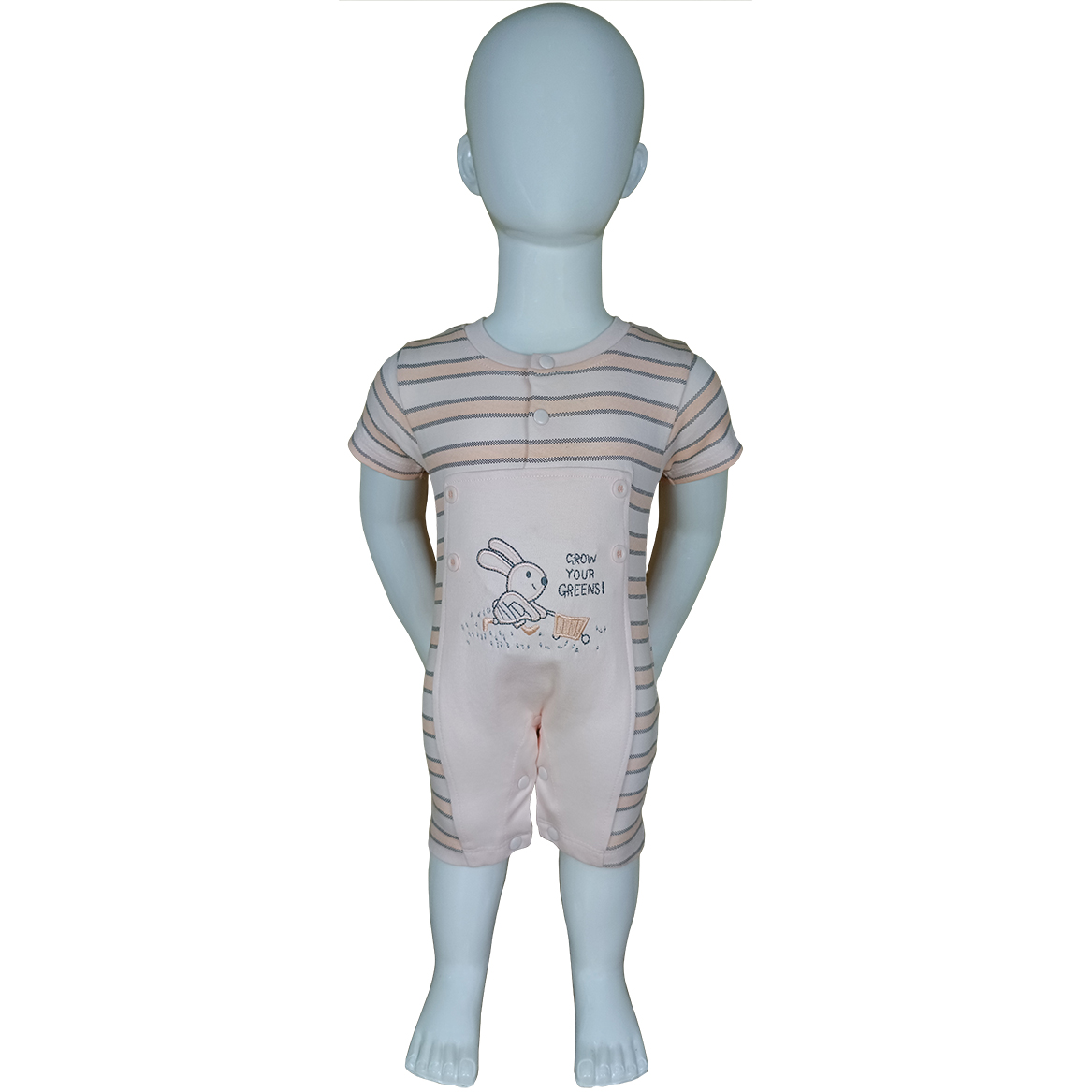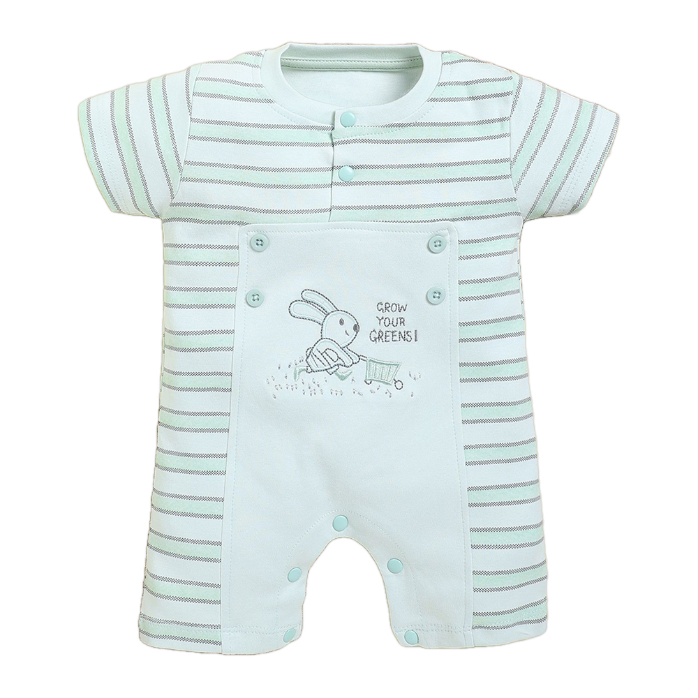 - DESIGN FEATURES: Adorable bunny embroidery with ‘Grow Your Greens’ message, complemented by classic pastel stripes for a charming look