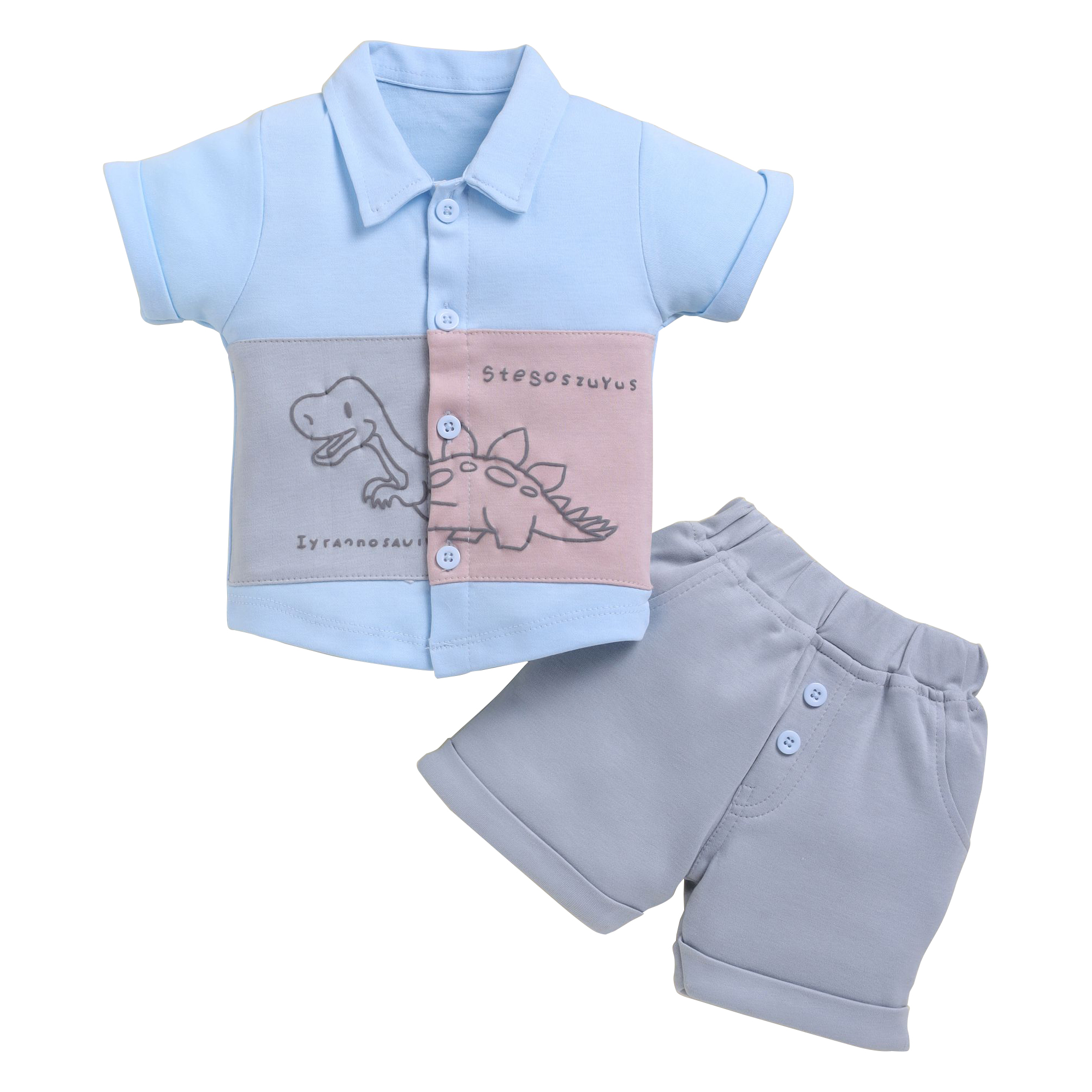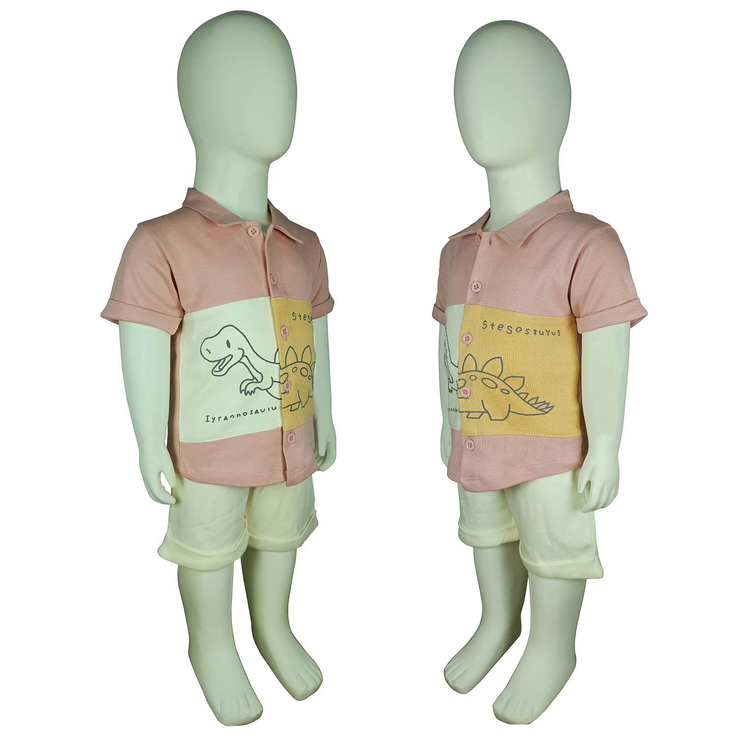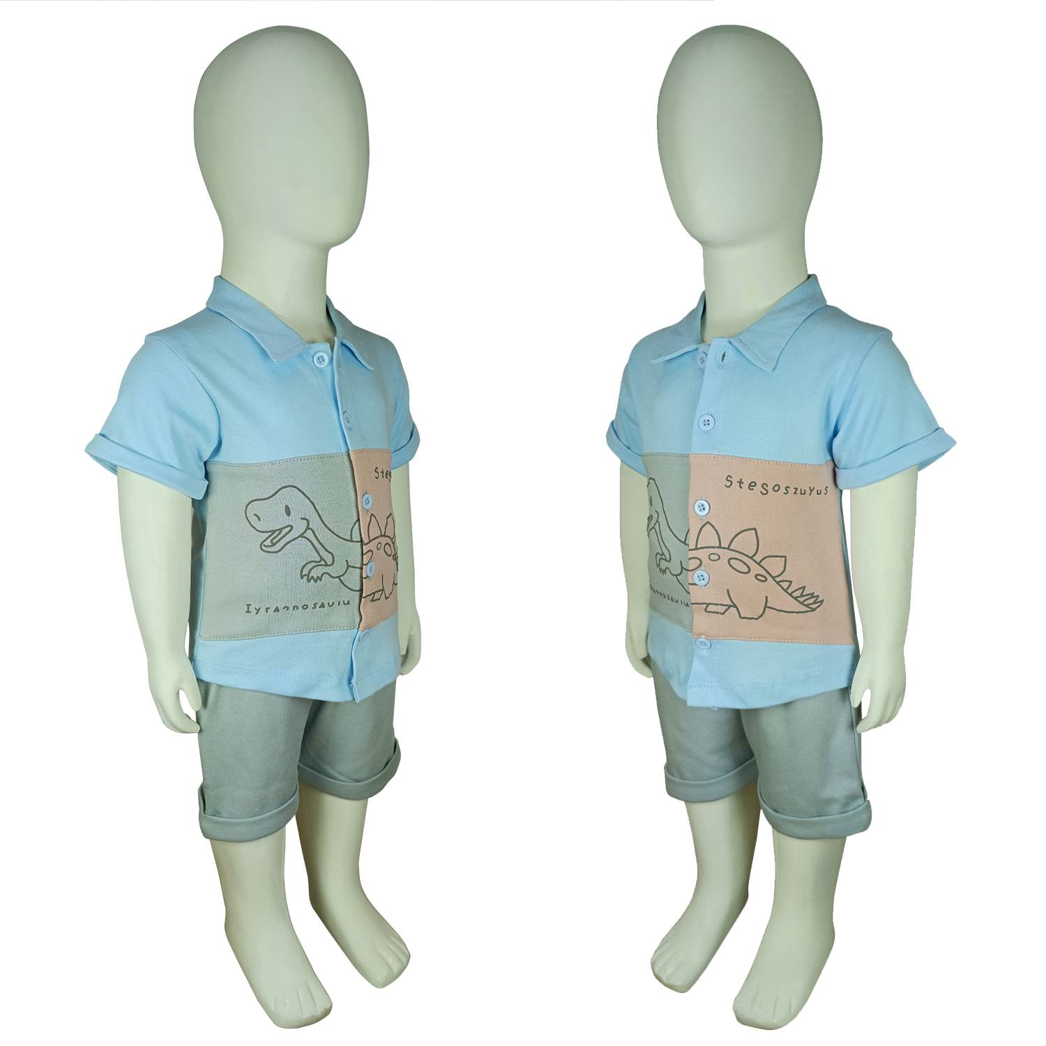 Comfort Meets Style: Includes a smart collared button-up shirt paired with cozy, elastic-waist shorts.